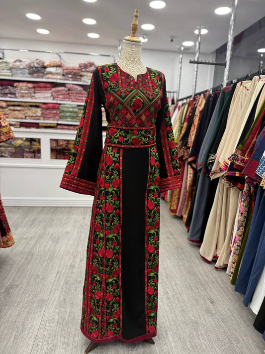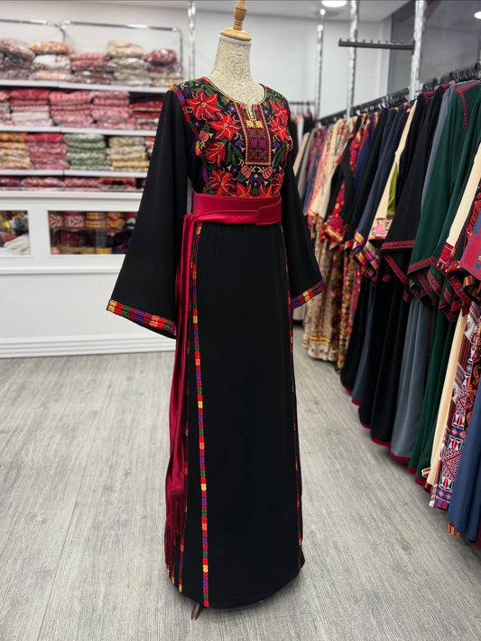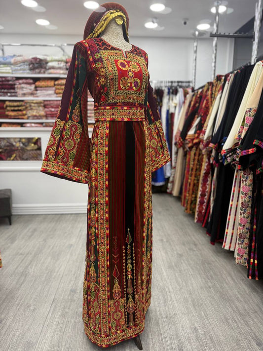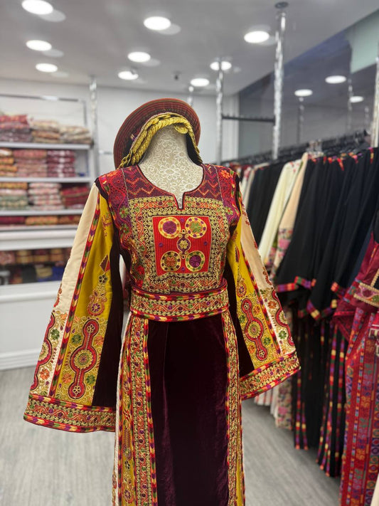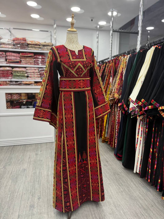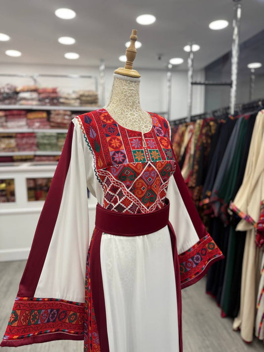 فساتين فلسطينية تقليدية ملفوفة بالتطريز المعقد، أو التترييز، لإعطاء كل فستان نمطًا فريدًا