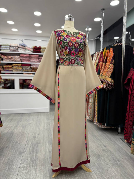 New Beige Falahi tatreez Kabba with Manajel Thobe