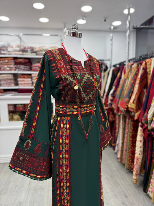 traditional Palestinian dresses that are wrapped in intricate embroidery, or tatreez, to give each dress a unique pattern
