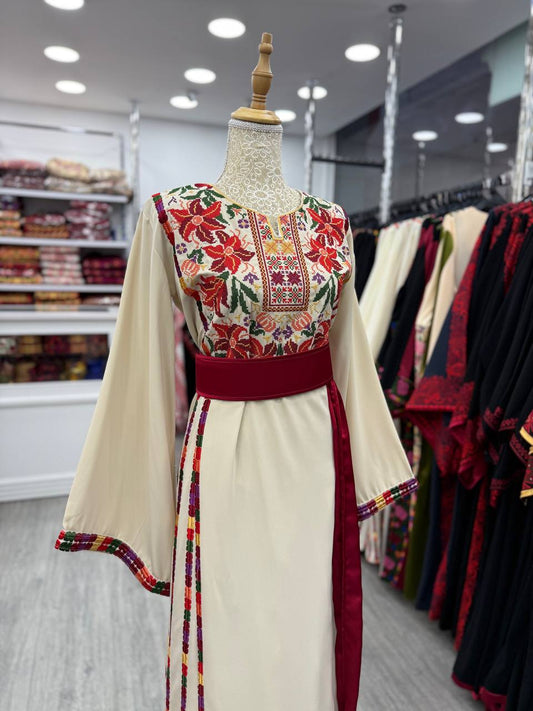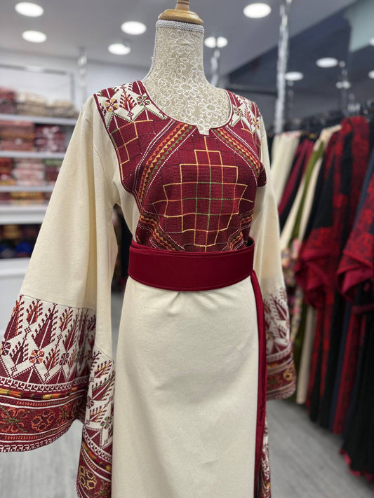 traditional Palestinian dresses that are wrapped in intricate embroidery, or tatreez, to give each dress a unique pattern