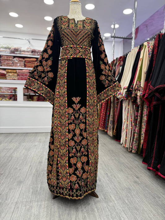 Green Velvet Floral Thobe Hand Beaded Preorder
