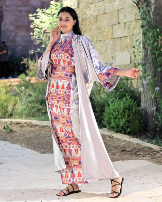 Modern satin embroidered Bisht