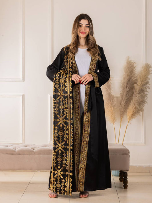 Simple Tatreez Satin open Abaya